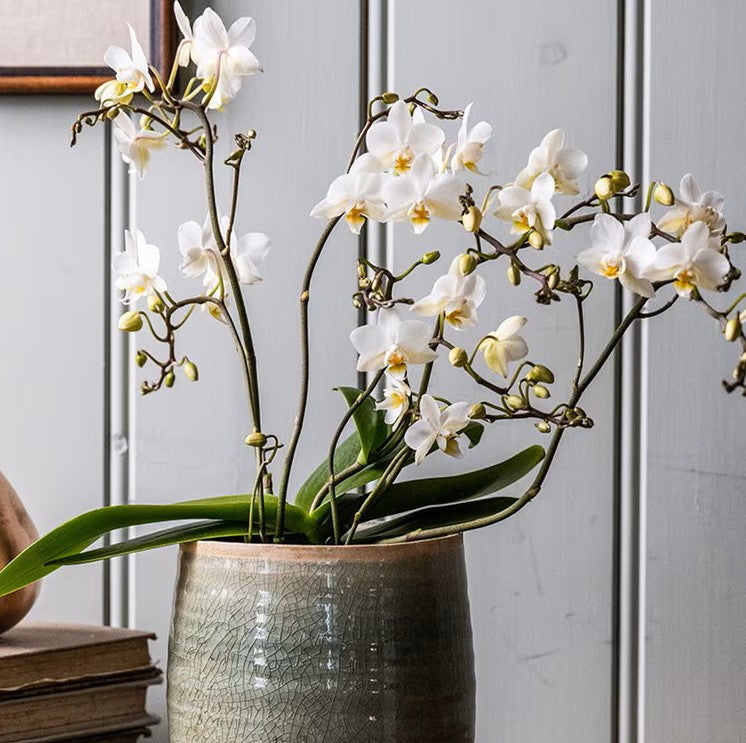OPHRA - Luxury Planter in a willow basket, or ceramic, surrounded with moss. Contains three - two stem Phalaenopsis orchids. Available in white, shades of pink and on occasion a soft yellow. The Orchidaceous, a diverse and widespread family of flowering plants, with blooms that are often fragrant, commonly known as the orchid family. This impeccable planter showcases nature's beauty and charm. With the variety of orchid colours, it can easily be customized to perfectly match your home's decor. Indulge in the natural wonder of these flowers with OPHRA - Luxury Orchid Planter. Orders requires 48 hours notice